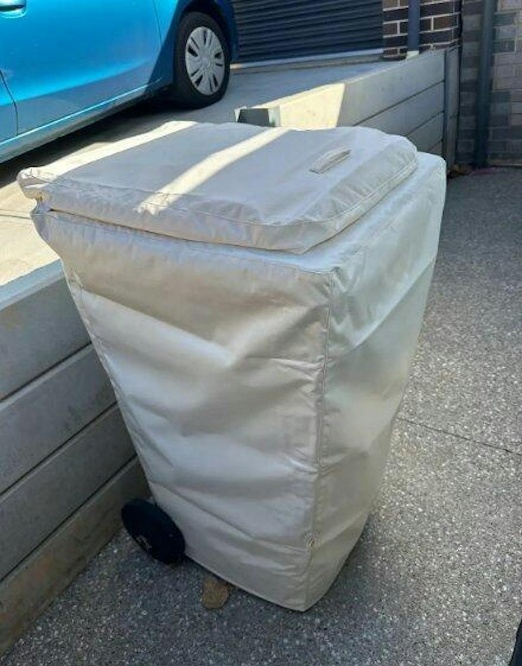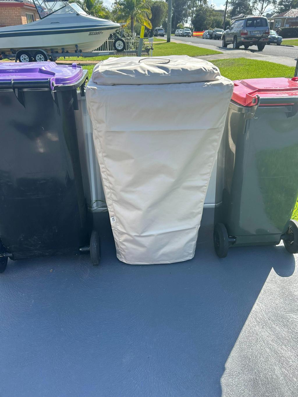 - Caution: You might find yourself staring at your bin all day. Our Luxe covers are made to be removed on bin day — it takes 30 seconds. You can also just lift the lid cover off, but this may reduce longevity. Always store dry, and keep in shade to minimise fading from the Aussie sun. Check our installation & care guide for tips.